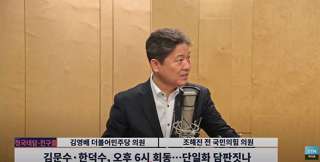 ◈조해진: 그러니까 왜 내가 후보인데 포기하고 한덕수한테 넘겨주라고 이야기하느냐, 말이 되냐. 그런데 당에서 이야기하는 거는 또 당원들이 이야기하는 거는 그런 게 아니거든요. 단일화를 해라, 그래서 경쟁력이 더 나은 사람이 최종 후보가 되라 그 이야기죠. 포기하고 넘기라는 이야기가 아니거든요. 그런데 후보 쪽에서 그렇게 이야기를 호도를 하니까 단일화할 의사가 없으니까 자꾸 저런 식으로 말하는 거 아닌가 하는 그런 오해를 받게 되는 거죠.