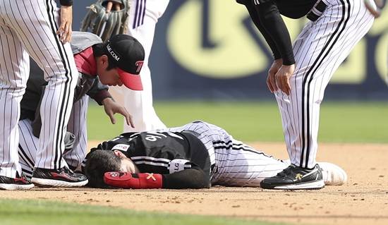 "오스틴 집에 갔다" 염갈량 한숨, 주루 중 충돌 위험천만 꽈당→'곰 킬러' 타점왕 7일 결장 [잠실 현장]