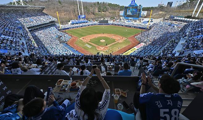 3월 23일 오후 대구 수성구 삼성라이온즈파크에서 열린 2025 신한 SOL Bank KBO리그 삼성 라이온즈 -키움 히어로즈 경기를 보러 온 야구팬들이 선수들의 경기를 보며 즐거운 시간을 보내고 있다. 영남일보 DB