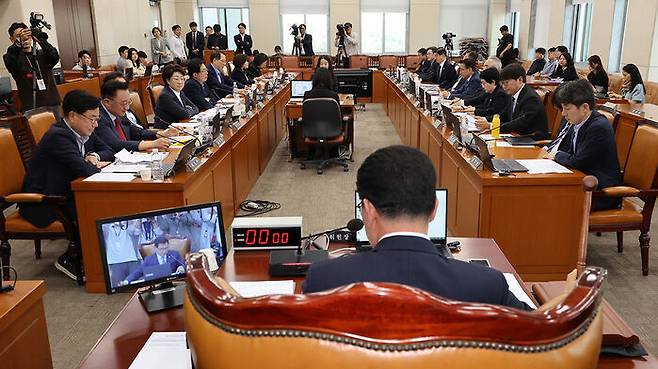 ▲ 7일 국회 행정안전위원회 전체회의에서 공직선거법 개정안이 상정되고 있다.