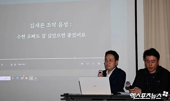 7일 오후 서울 강남구 삼성동 스페이스쉐어 삼성역센터에서 배우 故 김새론 유가족 측의 기자회견이 진행했다. 현장에는 가로세로연구소 김세의와 김새론 유족 측 법률대리인 법무법인 부유 부지석 변호사가 참석했다.