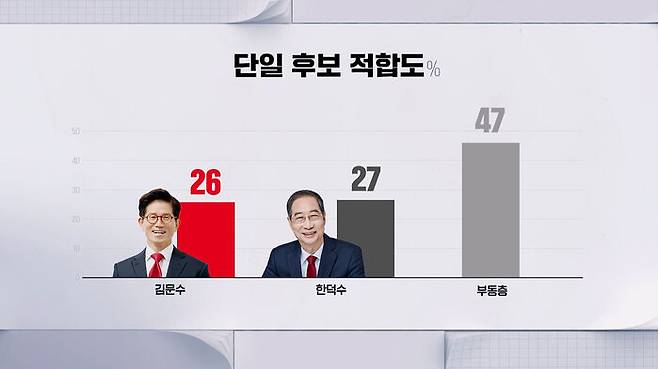 김문수 26%, 한덕수 27%로 오차 범위 안에 있었습니다.