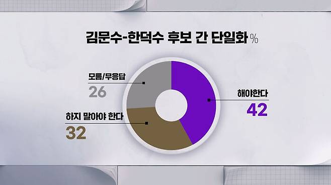 '단일화해야 한다' 42%, '하지 말아야 한다' 32%였습니다.