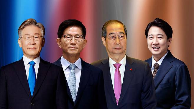 이재명 48%, 김문수 17%, 한덕수 16%, 이준석 4%, 이낙연 2%로 조사됐습니다.