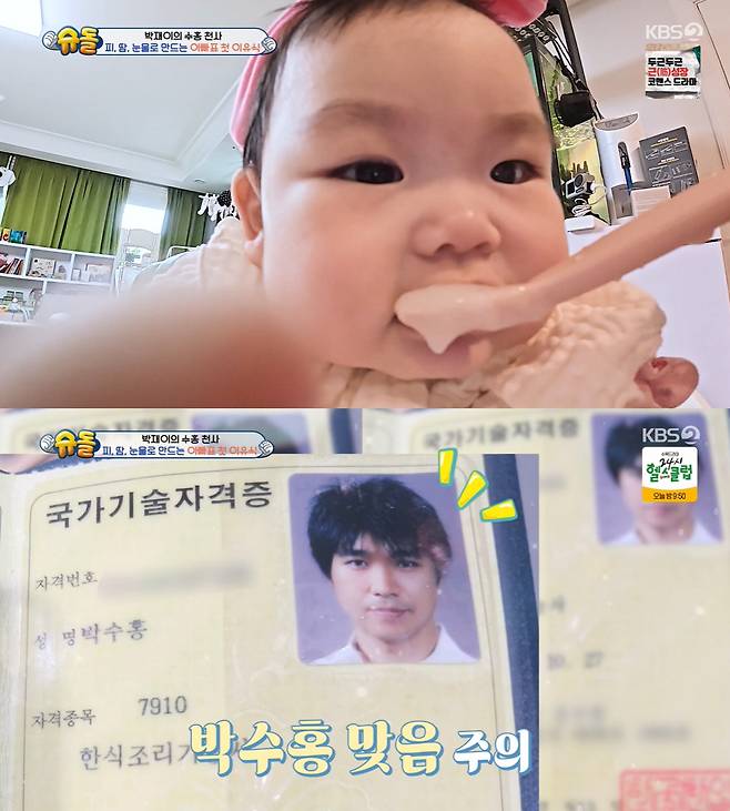 훌쩍 자라 이제 이유식을 먹는 재이. 평소 뛰어난 요리실력으로 정평이 난 박수홍은 첫 이유식을 시식하는 재이를 보며 긴장했다. 걱정과 달리 재이는 아빠표 이유식을 잘 먹었고 더 달라고 얼굴이 나가기까지 해 박수홍을 흐뭇하게 했다.