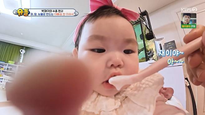 감자 이유식은 물론 특별식으로 푸룬 퓌레까지 완성한 박수홍은 긴장된 마음으로 "재이야 아"라며 첫입을 먹였고, 재이는 입맛에 딱 맞는지 맛있게 먹는 모습을 보였다.