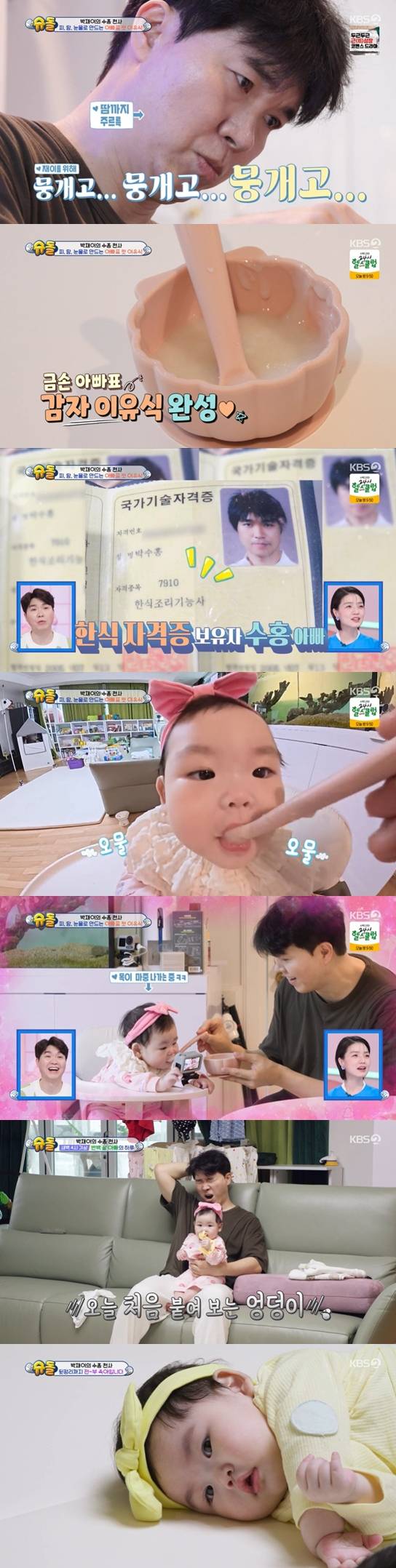 '한식 자격증' 박수홍, 딸 재이에 정성...감자 이유식에 푸룬 퓌레까지 (슈돌)[종합]