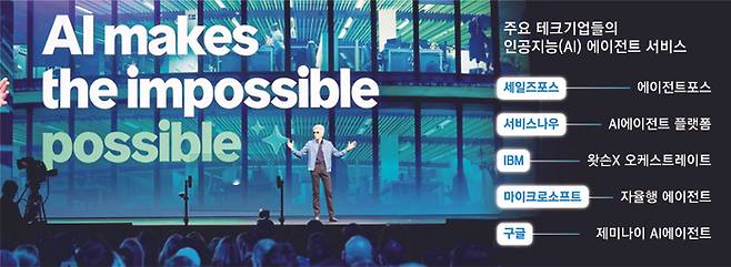 지난해부터 기업용 소프트웨어를 만드는 주요 테크기업들은 ‘AI에이전트’를 전략의 중심에 두고 있다. 기업 간 거래(B2B) 소프트웨어로 유명한 세일즈포스는 지난해 9월 ‘에이전트포스’를 공개했고 마이크로소프트도 다양한 기업 업무에 걸맞은 AI에이전트를 애저 클라우드를 통해 서비스하고 있다.