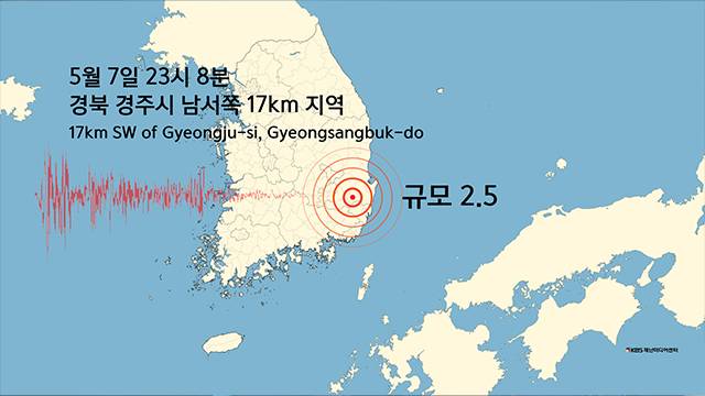 오늘(7일) 밤 11시 8분에 경북 경주시에서 규모 2.5의 지진이 발생했습니다.