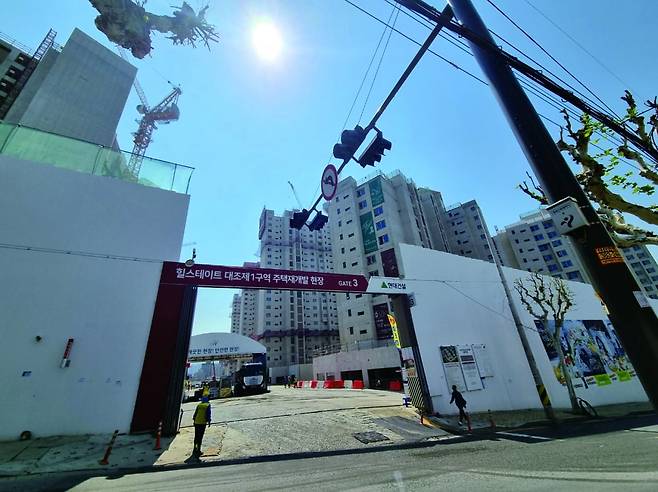2004년 기본계획 수립과 함께 시작된 대조1구역 재개발 사업은 2011년 재개발 조합 설립, 2017년 사업시행계획 인가를 거친 뒤 현대건설을 시공사로 선정했다. 주택시장 호황과 함께 순항하는 듯했던 사업은 조합 내부갈등이 이어지며 2023년 1월 공사가 중단되기에 이르렀다. 조합이 현대건설에 1년 치 공사대금 1800억원을 제때 지급하지 못했던 탓이다.