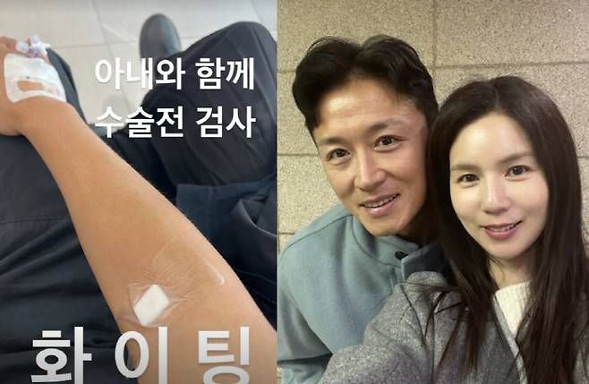 7일 진태현은 "아내와 함께 수술 전 검사. 화이팅"이라며 담담히 말했다.