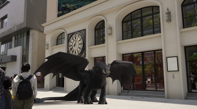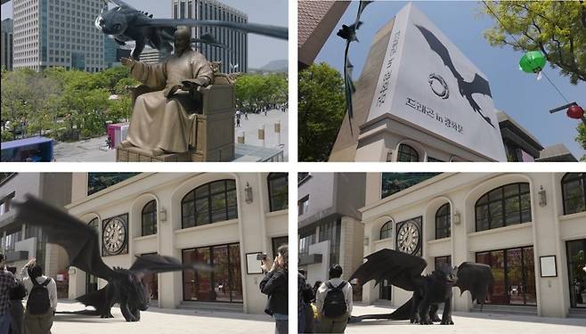 지난 7일 '드래곤 길들이기'의 전설적인 드래곤 나이트 퓨어리 '투슬리스'가 서울 하늘을 날아 광화문 광장에 착륙하는 놀라운 장면을 담은 이색 영상이 공개됐다.