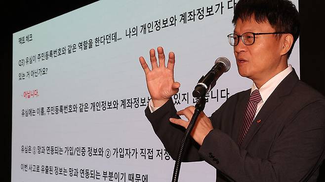 ▲ 유심 개인정보 관련 질문에 답하는 류정환 SKT 부사장