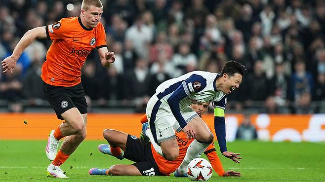 프랑크푸르트와의 유로파리그 8강 1차전에서 발을 다친 손흥민은 이후 잉글랜드 프리미어리그 4경기, 유로파리그 2경기에 뛰지 못했습니다.