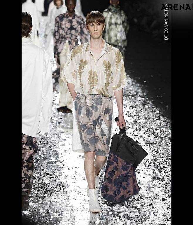 3. 드리스 반 노튼의 핸드 프린티드 실크 셔츠 & 쇼츠.