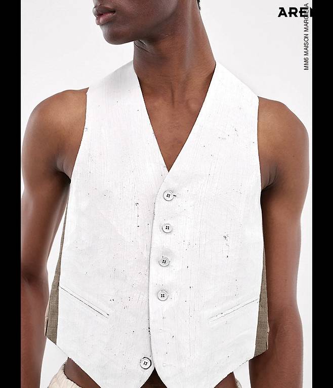 2. 가죽 베스트. MM6 메종 마르지엘라의 화이트 베스트는 여름에도 입기 좋다.