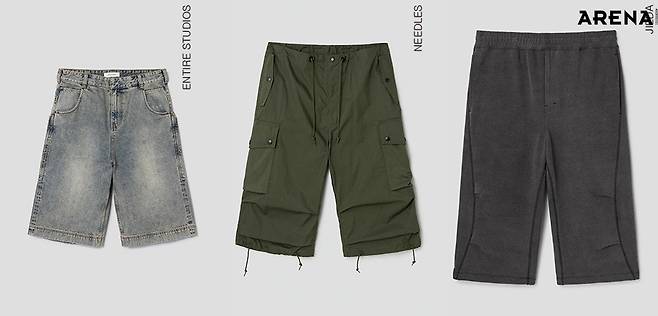 7부 길이의 바지는 기존 남성복에서 찾아보기 어려운 스타일인데, 이번 시즌 여러 브랜드에서 선보였다. 엔타이어 스튜디오의 데님 팬츠, 지에다의 스웨트 팬츠, 니들스의 카고 팬츠가 대표적이다.