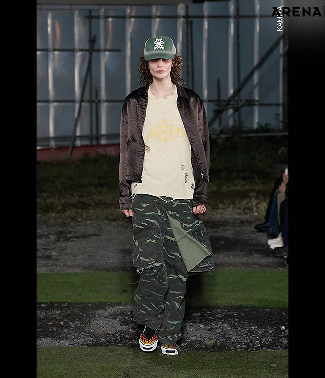 4. 카미야의 실크 셔츠 & 카무플라주 워시 카고 팬츠.