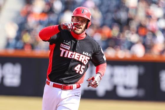 KIA도 4회 초 반격했다. 위즈덤이 142km 직구를 때려 좌중간 2루타를 쏘았고 변우혁이 땅볼 출루했지만 위즈덤 출루가 이뤄지지 않아 1사 2루가 됐다. 직후 김태진 실책으로 위즈덤이 홈으로 들어오며 1-1 동점이 만들어졌다.