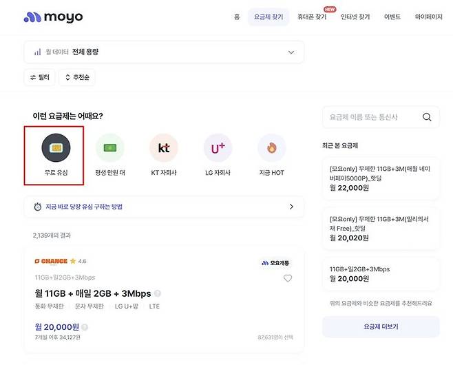 한편 모요는 사용자의 데이터 사용량을 분석해 알맞은 알뜰폰 요금제를 추천하는 서비스다. 2100여개 요금제, 주간 요금제 랭킹, 사용자 리뷰 등을 제공하고 있다.