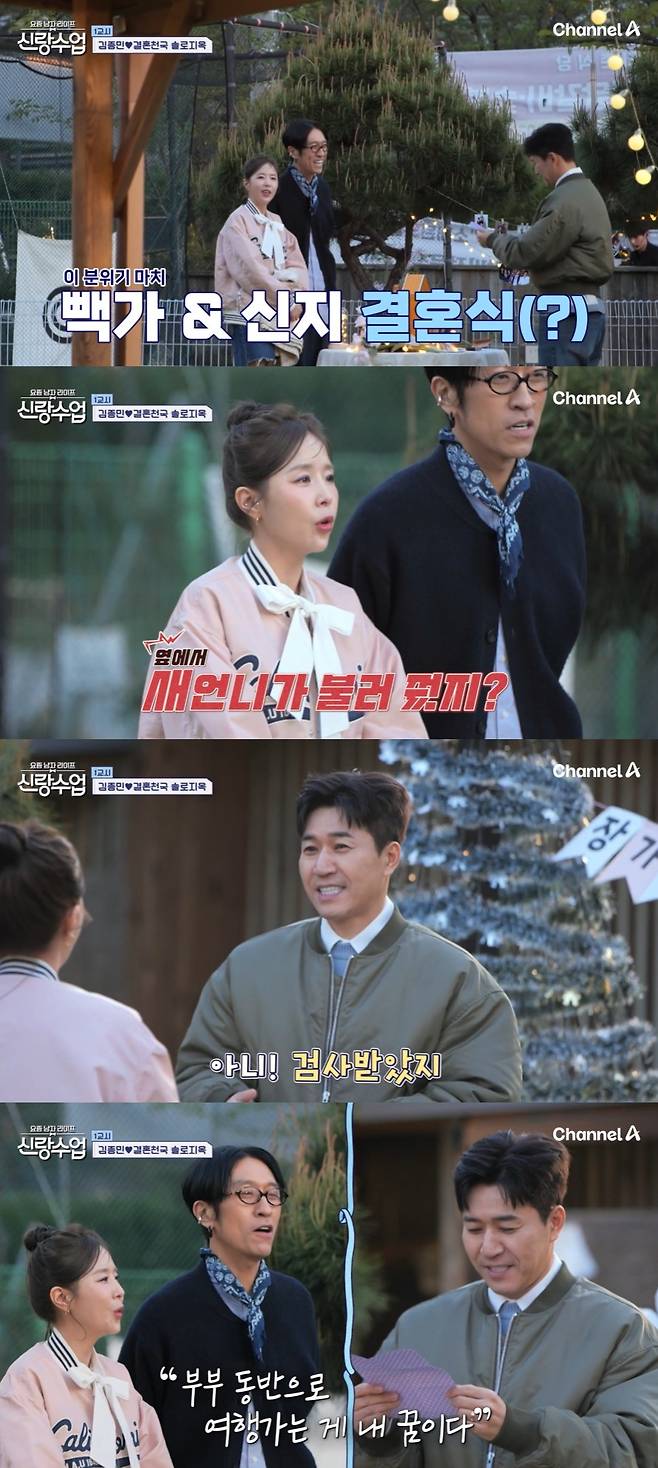 7일 방송한 채널A '신랑수업'에는 결혼식을 마친 김종민이 준비한 이벤트가 담겼다.