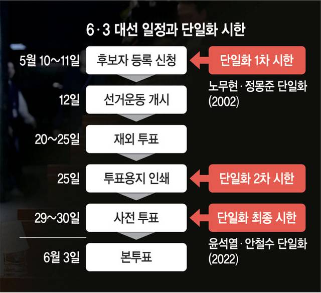 단일화 분란으로 이재명 사법 리스크 가려져… 극적 단일화 통한 대역전 가능성 15%가량