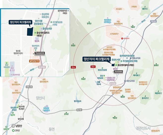 교통여건도 좋아 출퇴근도 편리하다. 부산과 울산을 잇는 웅상대로 및 7번 국도가 가깝고, 동양산과 서양산을 동서로 잇는 지방도 1028호 국도 승격도 추진 중으로 향후 더욱 편리한 교통망도 기대해볼 수 있다.