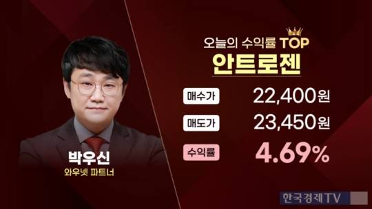 한편, 투자 서바이벌의 최종 결선에 진출한 7인의 전문가가 마지막 승부를 펼쳐지고 있는 가운데 이날의 수익률 1위는 ▲안트로젠(065660)을 추천하며 4.69%의 수익률로 ‘제이트렌드 투자연구소’ 박우신 대표가 차지했다.