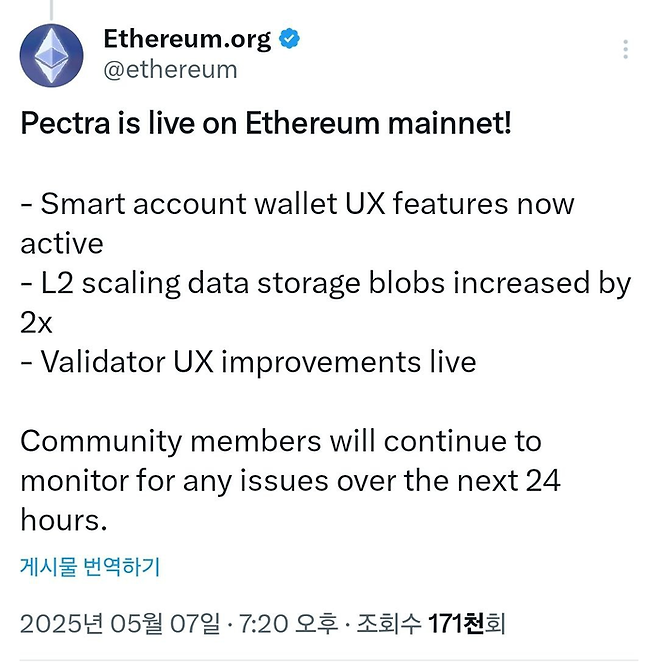 주요 개선점은 이더리움의 데이터 처리량(블롭) 확대, 수수료 절감, 검증자 유연성 강화, 검증자 스테이킹 한도 확대 등이다.