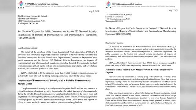 무역협회는 의견서를 통해 한국의 반도체 및 의약품 수출이 미국의 국가안보를 저해할 위험이 없어 '232조 조치 대상'에서 제외돼야 한다고 주장했습니다.