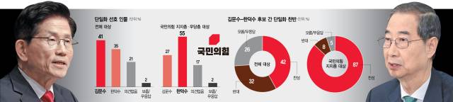 보수 단일후보에 金 41% 韓 35%···국힘·무당층선 韓 55% 金 27%[대선 여론조사]