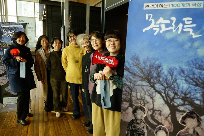 "사실 일반 개봉하라는 요구가 많았는데 영화진흥위원회 개봉 지원 사업에 떨어지기도 했고, 기성 배급사들이 이미 라인업이 다 찬 이유도 있었다. 상황을 보니 일반 배급을 했을 때 홍보 방식도 뻔해 보였고 관객 수도 한 2, 3천 명 정도로 보시고 끝날 것 같더라. 그러다 100개의 극장 프로젝트를 하면 배급비용도 아낄 수 있고, 관객들의 자발성이 힘이 더 될 것 같다고 판단했다."