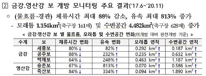| ▲ 국가물관리위원회가 2021년 1월 세종보 해체 등 금강·영산강 보 처리 방안을 발표하면서 발표한 모니터링 자료 |
