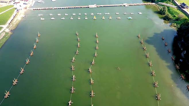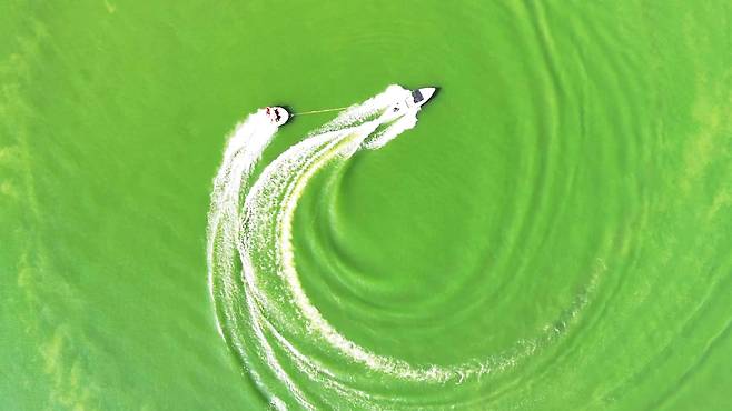| ▲ 녹조물에 띄운 황포돛배 |