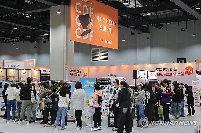 (서울=연합뉴스) 류효림 기자 = 8일 서울 강서구 코엑스 마곡에서 열린 카페디저트페어에서 참관객들이 전시장을 둘러보고 있다. 2025.5.8
