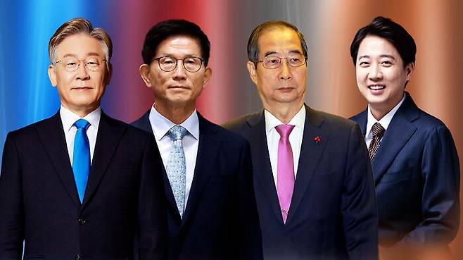 대선 후보로 거론되는 인물들에 대한 호감도를 질문한 결과 이재명 후보에 호감이 간다는 응답이 43%로 가장 높았으며, 뒤이어 한덕수 후보 36%, 김문수 후보 28%, 이준석 후보 17%의 순이었습니다.