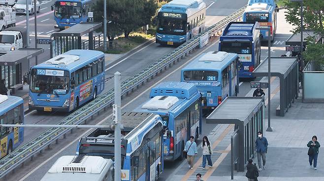▲ 서울 시내버스 노조가 연휴가 끝난 뒤 첫차부터 준법투쟁(준법운행)을 재개한 7일 오전 서울역 앞 버스환승센터 정류장에 버스들이 줄지어 서 있다.