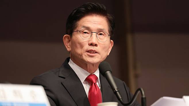 ▲ 국민의힘 김문수 대선 후보가 8일 서울 중구 한국프레스센터에서 열린 관훈클럽 토론회에서 발언하고 있다.