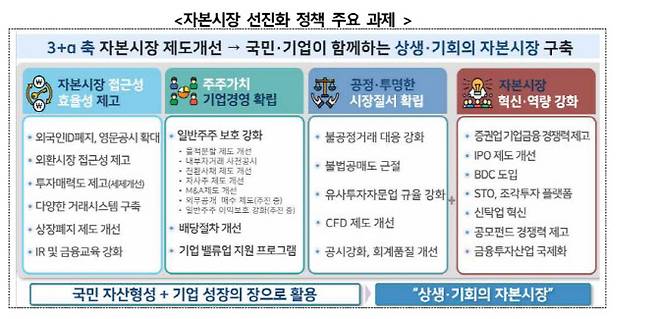 실제로 2024년 외국인 계좌개설 건수는 전년 대비 약 4배 증가했고, 영문공시 건수도 58% 늘었다. 배당제도 개선으로 12월 결산 상장기업의 절반가량이 정관을 개정했으며, 세계국채지수(WGBI) 편입 등 글로벌 선진지수 진입 성과도 거뒀다.