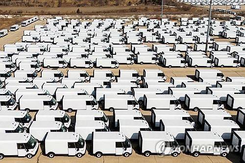 [캐나다 온타리오주 GM 공장 인근에 세워진 트럭들 (로이터=연합뉴스 자료사진)]