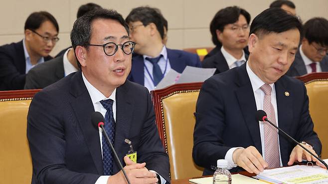 ▲ 8일 국회 과학기술정보방송통신위원회 전체회의에서 열린 SK텔레콤 유심 해킹 사건 청문회에서 유영상 SK텔레콤 대표이사가 의원 질의에 답하고 있다.