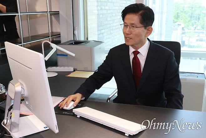 | ▲ 당사 대선 후보실에서 업무 보는 김문수 김문수 국민의힘 대선 예비후보가 8일 오후 서울 여의도 중앙당사에 마련된 대선 후보 집무실을 찾아 업무를 보고 있다. |