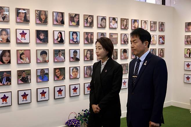 | ▲ 진보당 김재연 대선후보와 윤종오 원내대표(울산 북구, 아래 의원)가 8일 어버이날 맞아 '10.29 이태원 참사 기억소통공간 별들의 집'에 마련된 추모공간에서 유가족을 만나고 있다. |