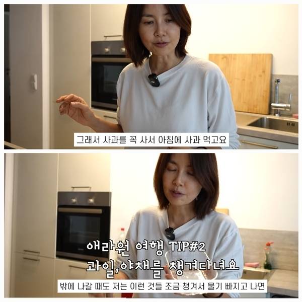 ‘55세’ 배우 신애라가 여행 중에도 흐트러지지 않는 건강 루틴을 공개했다.