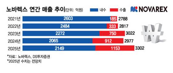 올해 노바렉스 매출액 경신은 단순 외형 성장 이상의 의미를 가진다. 중장기 도약을 위한 수출 성장세가 여전한 가운데 현재 매출 중심축인 내수 실적이 최근 수년간 지속된 부진 고리를 끊어냈기 때문이다.
