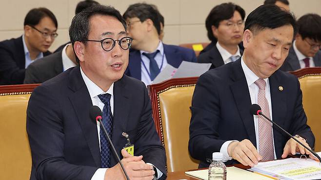 ▲ 8일 국회 과학기술정보방송통신위원회 전체회의에서 열린 SK텔레콤 유심 해킹 사건 청문회에서 유영상 SK텔레콤 대표이사가 의원 질의에 답하고 있다.