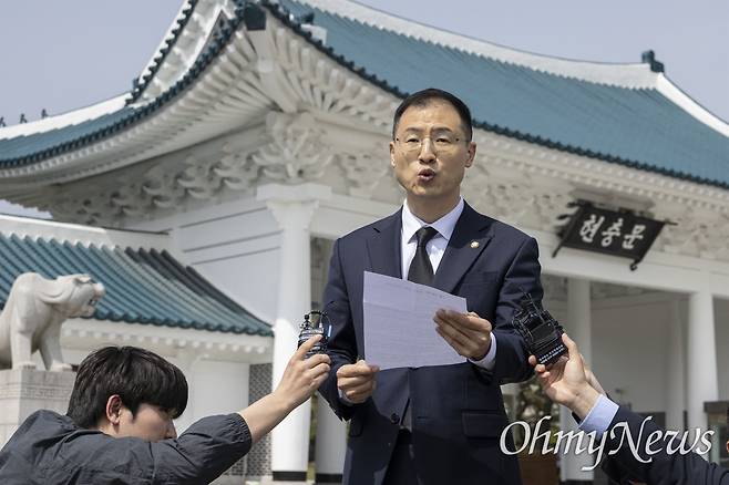 | ▲ 국민의힘 김상욱의원이 8일 오전 서울 동작구 국립현충원에서 참배를 마치고 탈당 기자회견을 하고 있다. |