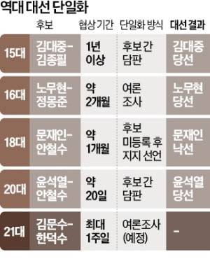 역대 단일화 협상, 최소 20일 걸려…여론조사는 한 번뿐