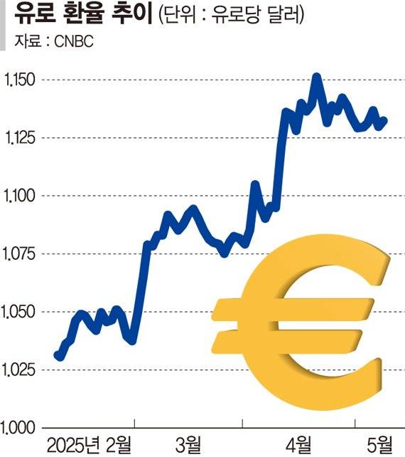 유럽 업체들에게 큰 시장인 미국의 소비자들이 트럼프 행정부의 무역 정책으로 지갑을 닫을 조짐까지 보이고 있는 가운데 유로 가치 마저 상승하면서 경쟁력을 잃고 있다. 미국은 지난달 유럽연합(EU) 수입품에 상호관세 20% 부과를 발표했다가 10%로 낮췄으며 90일간 유예했다. 유로 강세는 최근 미국의 관세 정책 등 미국 정책 및 경제의 불확실성이 확대되면서 비롯됐다. 달러에 대한 신뢰가 약해지면서 유로 및 아시아 통화가 강세로 전환됐다.