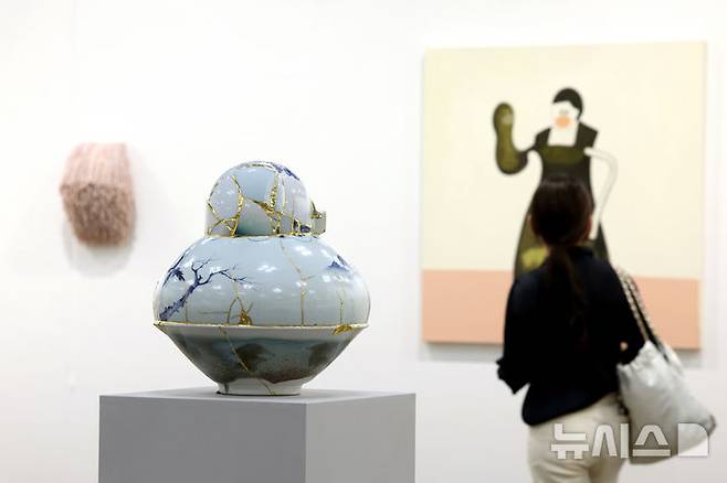 [부산=뉴시스] 박진희 기자 = '아트부산 2025' VIP 프리뷰가 열린 8일 부산 해운대구 벡스코 전시장을 찾은 관람객들이 이탈리아 마시모테카를로 갤러리 작품을 둘러보고 있다. 이날 VIP 프리뷰를 시작으로 11일까지 열리는 아트부산은 국내 갤러리를 비롯해 17개국 109개 갤러리가 참여한다. 2025.05.08. pak7130@newsis.com